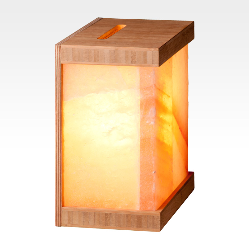 The Aurora lamp consists of salt bricks which are mounted in an oak frame without using glue. It weighs 4 kg and measures 12 x 22 x 23 cm.