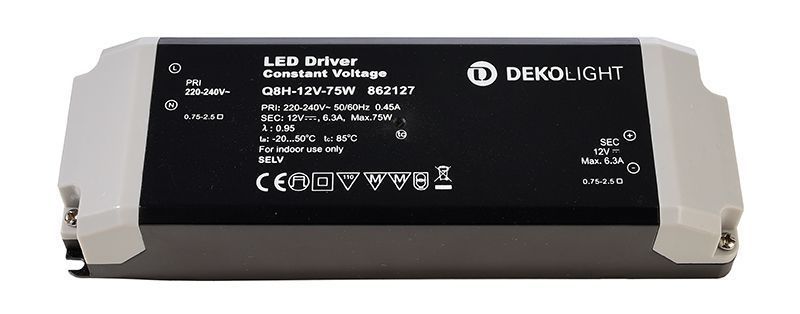 Deko-Light Netzgerät, BASIC, CV, Q8H-12-75W, Eingangsspannung: 220-240V AC/50-60Hz, Ausgangsspannung: 12V DC, Ausgangsstrom: 0-6300 mA, 75,00 W