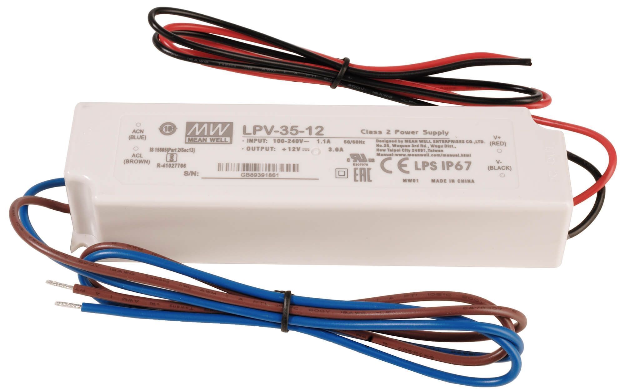 Meanwell Netzgerät, CV, LPV-35-12, Eingangsspannung: 110-240V AC/50-60Hz, Ausgangsspannung: 12V DC, Ausgangsstrom: 0-3000 mA, 35,00 W
