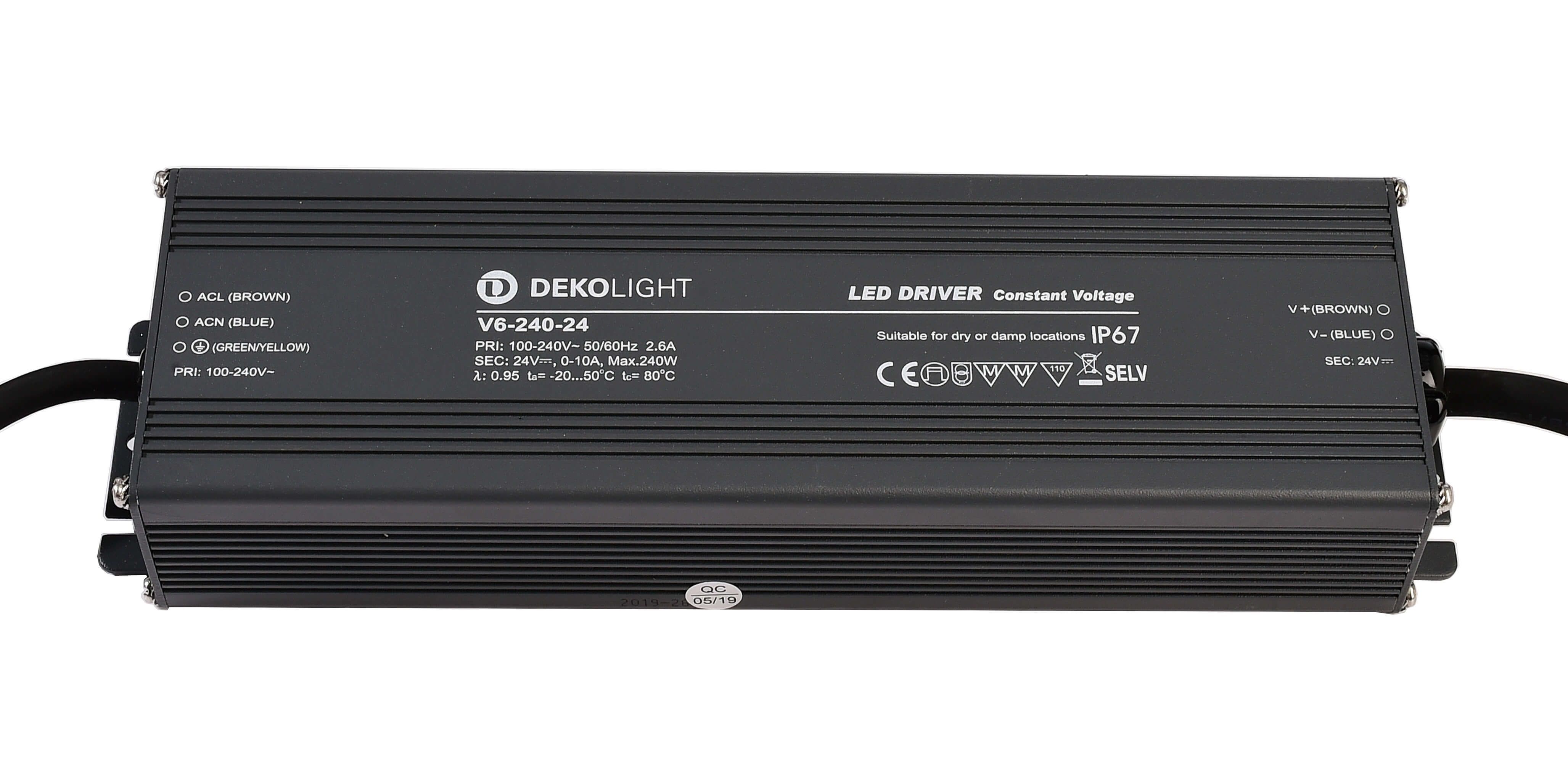 Deko-Light Netzgerät, IP, CV, V6-240-24, Eingangsspannung: 100-240V AC/50-60Hz, Ausgangsspannung: 24V DC, Ausgangsstrom: 0-10000 mA, 240,00 W