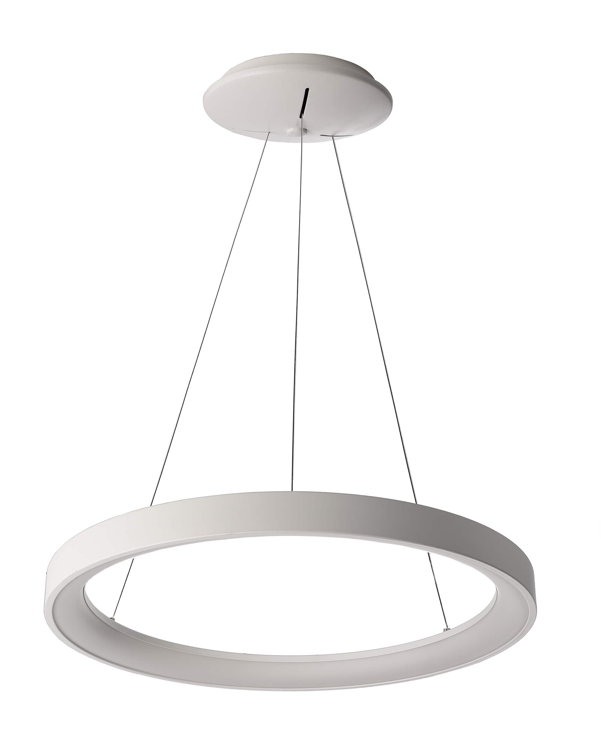 Die Pendelleuchte Merope vereint zeitlose Eleganz und reduzierte Modernität. Die innen im schlanken Rand verlaufenden warmweißen LEDs leuchten den Raum erstaunlich kraftvoll aus. Das Gehäuse ist aus hochwertigem Aluminium gefertigt und setzt auf eine edle