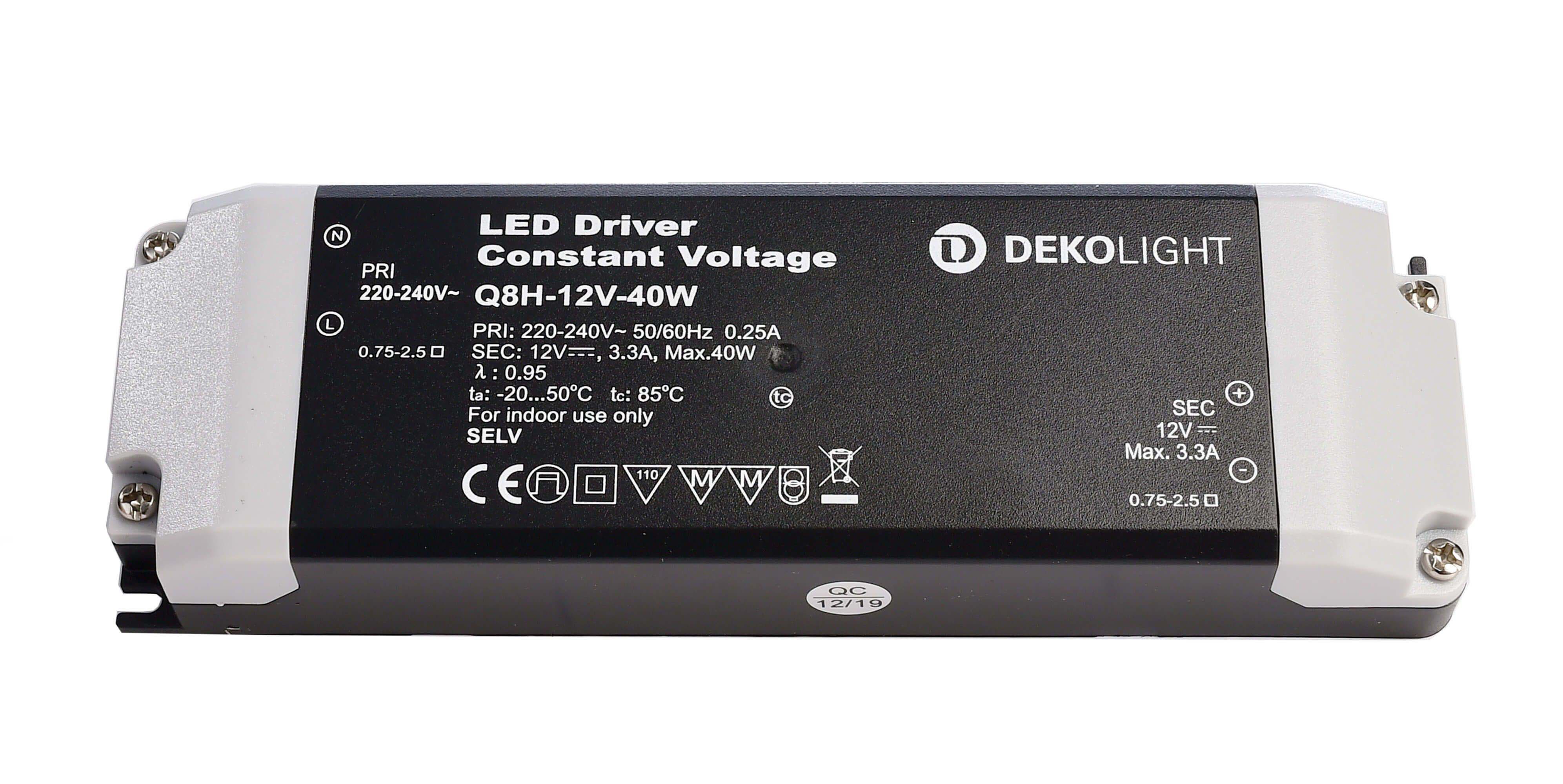 Deko-Light Power supply unit, BASIC, CV, Q8H-12-40W, input voltage: 220-240V AC/50-60Hz, output voltage: 12V DC, output current: 0-3300 mA, 40,00 W, IP20