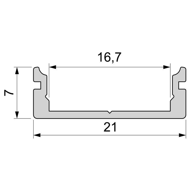 Deko-Light, U-profile flat AU-01-15 for 15 - 16,3 mm LED Stripes, aluminum, matt black, anodized, lenght: 1000 mm, width: 21 mm, height: 7 mm