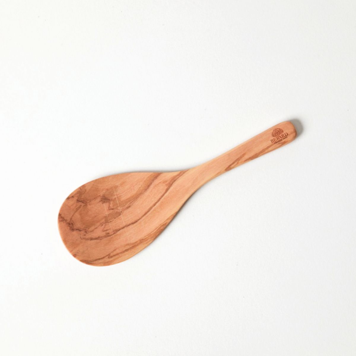 Formschöner Reislöffel aus Olivenholz. Olivenholz ist von Natur aus ein besonders robustes und widerstandsfähiges Holz. Es ist geprägt durch seine vielfältigen und intensiven Strukturen und besonders angenehmen Farbtönen. Jedes der hochwertigen Olivenholz Produkte ist , bestimmt durch die Individualität der Hölzer. Die Bérard Serien werden von Handwerkern in Handarbeit gefertigt, so dass keine zwei Stücke genau gleich sind.